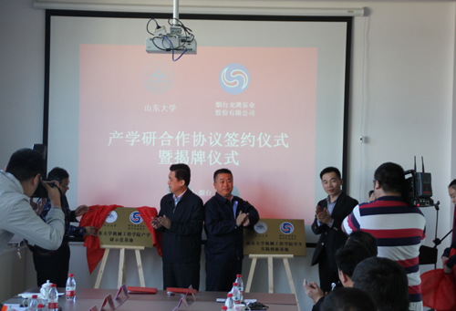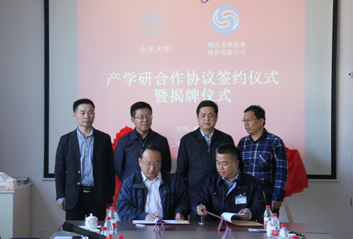 10月12日下午,山東大學(xué)機(jī)械工程學(xué)院與煙臺龍港泵業(yè)股份有限公司簽訂產(chǎn)學(xué)研合作協(xié)議,同時為共建企業(yè)研究院和為產(chǎn)學(xué)研示范基地、學(xué)生實(shí)踐創(chuàng)新基地揭牌。煙臺市委常委、統(tǒng)戰(zhàn)部部長于永信,高新區(qū)工委副書記劉來英,山東大學(xué)機(jī)械工程學(xué)院黨委副書記呂偉、副院長宋清華、陳頌英教授,煙臺龍港泵業(yè)股份有限公司董事長陳培倫等出席。